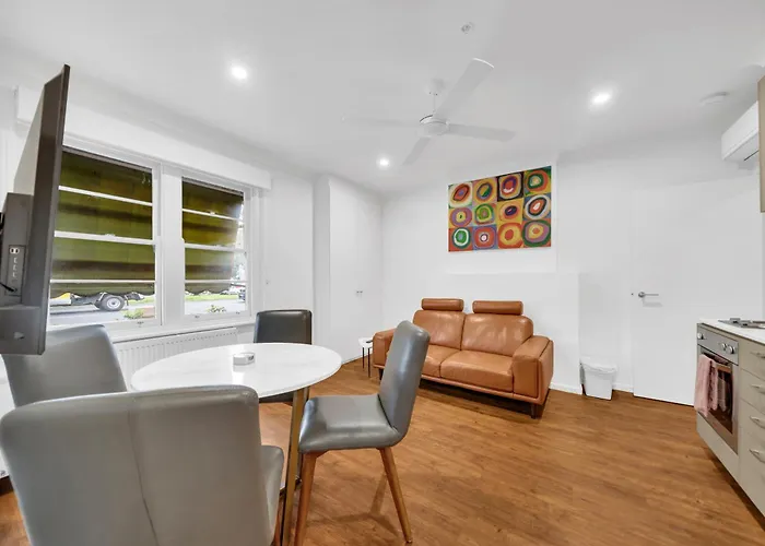 Komplette Küche mit einer Mikrowelle, einem Wasserkocher und einem Kühlschrank ist ebenfalls in diesem Apartment vorhanden. Die Gäste dieses Apartments können den Komfort von Ausstattung zur Kaffee- & Teezubereitung genießen. Die nahe gelegene Acspresso und Hungry Jacks Pty Ltd sind in 6 Minuten zu Fuß zu erreichen. Die Bushaltestelle Cromwell Street/Victoria Parade ist in 5 Minuten zu Fuß erreichbar.